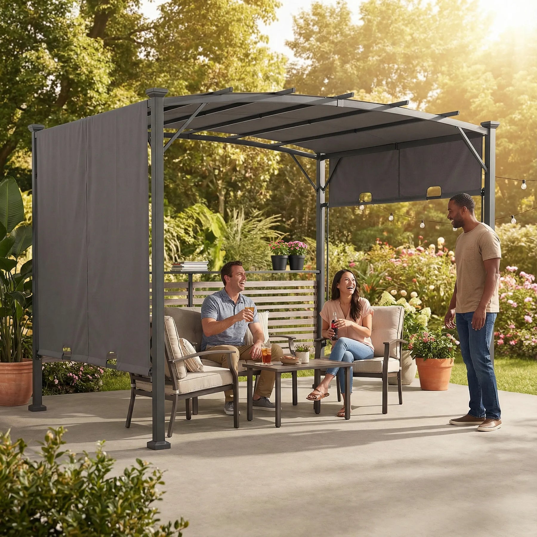 • Softtop-Pergola 3x3, hergestellt aus einem robusten, pulverbeschichteten grauen Stahlrahmen