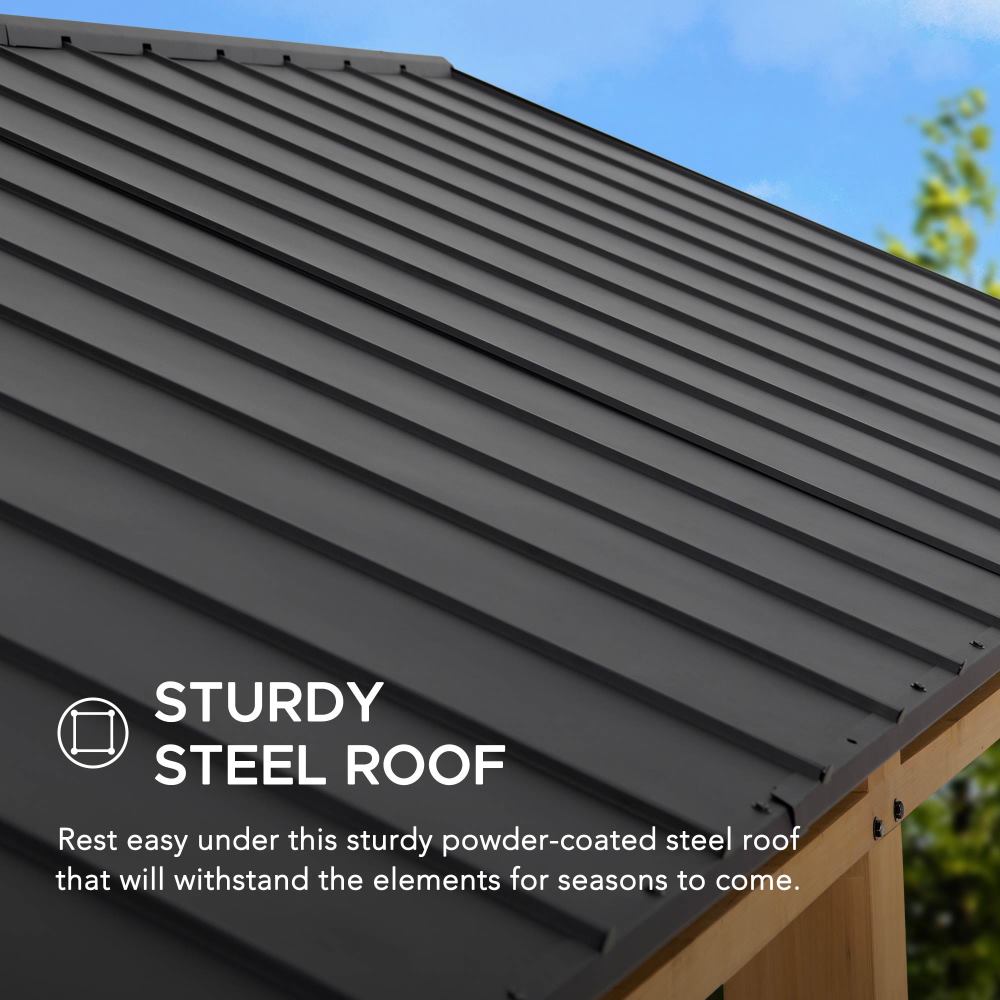 • Structure du cadre en bois de cèdre de haute qualité, prédécoupée et pré-percée avec une finition naturelle.
